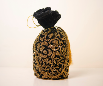 Trendy, classy and unique bag embroidered with cutdana + moti +beadwork