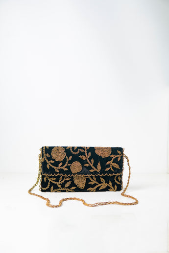 Black divine/ handembriodered clutch