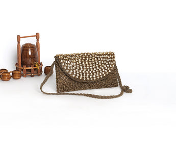 Elevate your look with this stunning beaded clutch .handcrafted with intricate beaded work .this clutch features a sleek and stylish design that's perfect for any occasion from weddings to formal events. It's compact sized 'make it easy to carry .purely handembriodered by our local skilled Pakistani artisans . Size 8 by 10 inches .