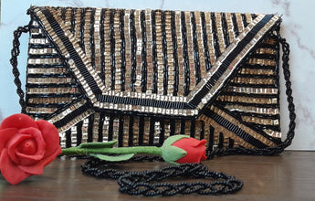 Hand embroidered bag embroidered with mainly sequence work which is unique and meticulously crafted and designed by collaborative efforts of our very own designers and skilful women of Pakistan.