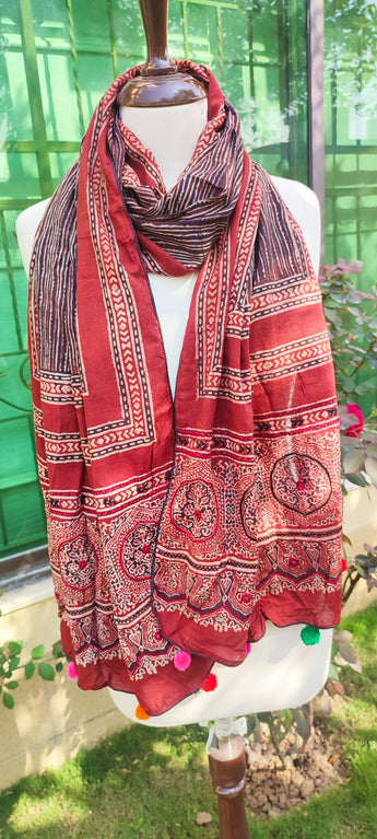 Ajrak stole embellished with handembriory