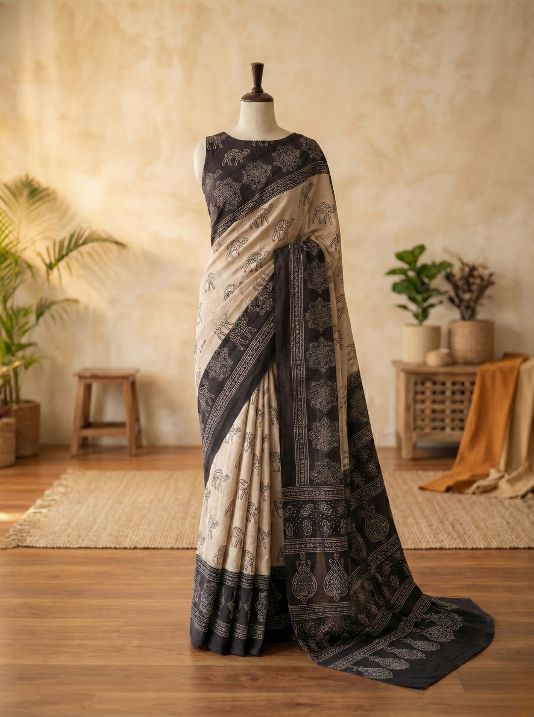 The monochrome palette lets the motifs shine - classic, calm, and quietly striking. Easy to wear yet full of character, Chandni is made for days that turn into evenings without needing a change.
