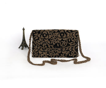Handmade is always love ,made by hearts, photos just don't not justice to their uniqueness and beauty . This floral beaded clutch is gonna make every occasion special. Such incredible details , intricately designed, skilfully executed by our local pakistani artisans. What a beauty what a glory. Embroidered with quality seedbeads ,squebeads ,pearls and stone. Luxurious satin lining, inside pocket, long beaded belt are the key features, size 7 by 10 inches .