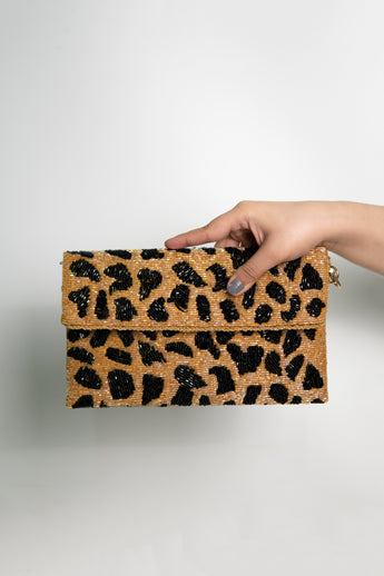 Leopard print clutch / seedbeads Bag
