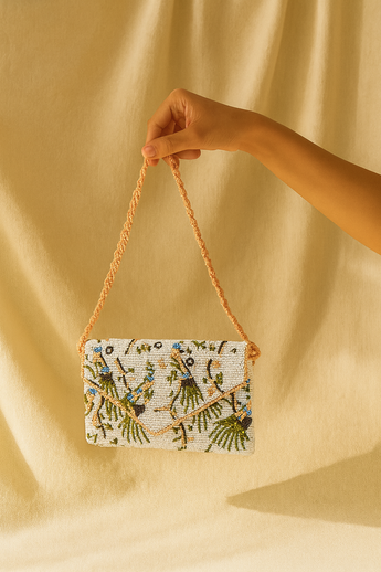 Abstract seedbeads art clutch/ handembriodered