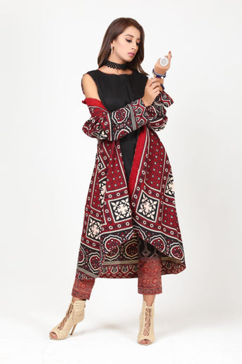 Ajrak hand block printed gown