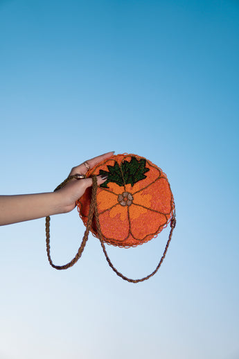 Orange beauty / round handembriodered bag