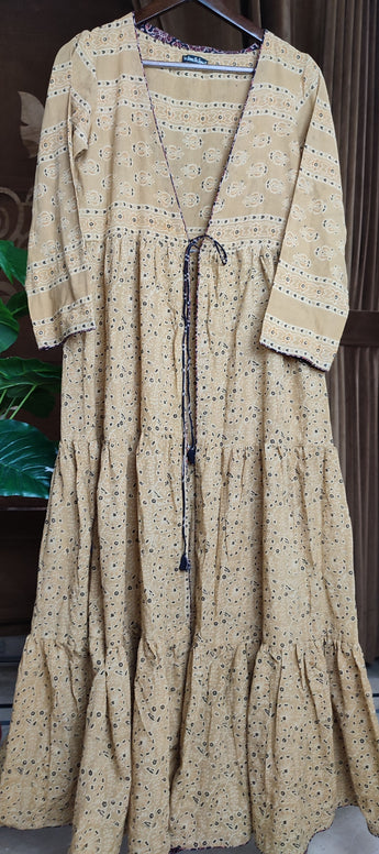 Hand Block Printed Open Slit Wide Flared Maxi Gown