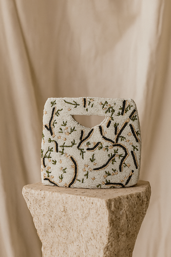 Crafted by skilled women artisans of Southern Punjab, White Garden is a delicate handmade handbag that blends tradition with timeless beauty. Intricately adorned with threadwork, sequins, and beads, this piece reflects the grace of handcrafted detail and empowers the hands behind it. A perfect statement of style and purpose.